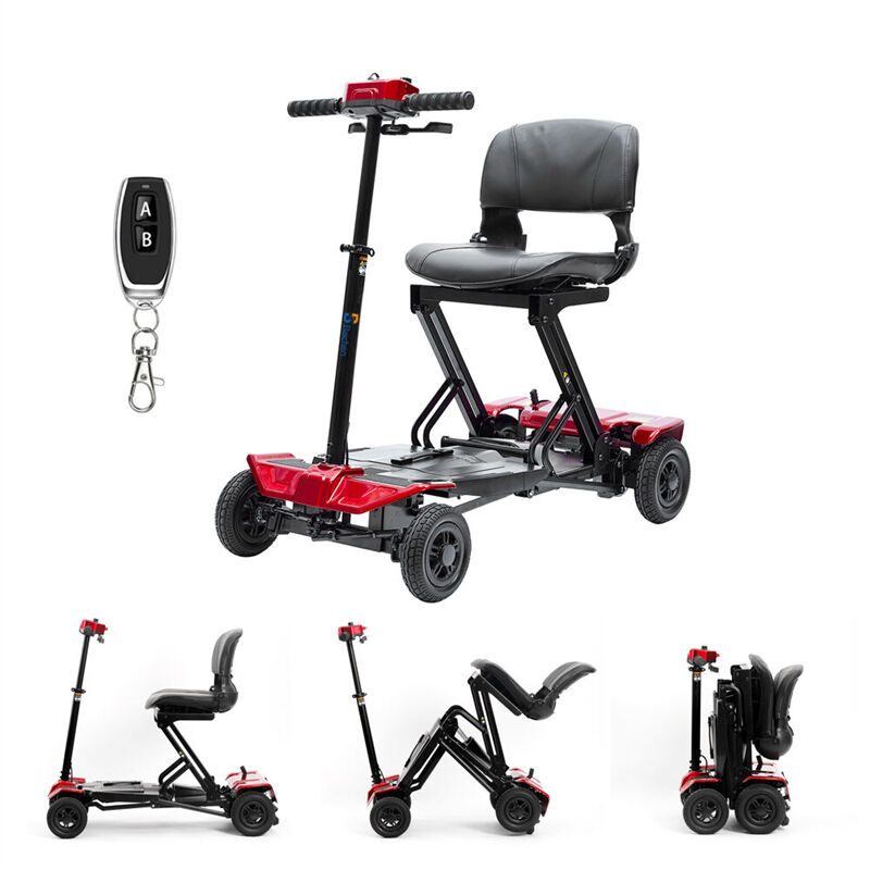 The 211FAF electric mobility scooter is designed with mobility and portability in mind. One of its standout features is its ability to fold automatically by remote control, which makes it easy to store and transport, even in tight spaces. When folded, the scooter has a very small and compact size, meaning you can easily store it in your car or take it on public transportation.